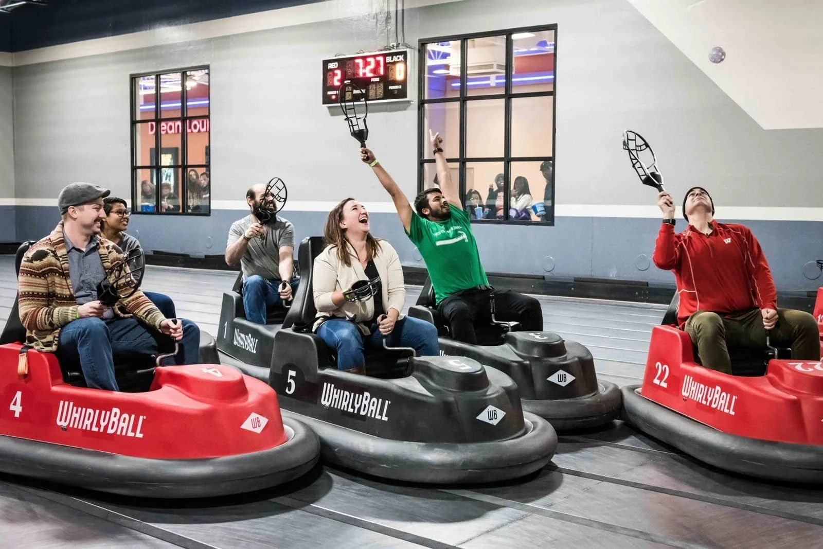 WhirlyBall is pure chaos in the best way. Imagine bumper cars on a basketball court, except everyone’s holding a scoop and chasing a wiffle ball. You’re not going to look graceful; nobody does. Half the time you’re spinning in circles, and that’s precisely why it works.