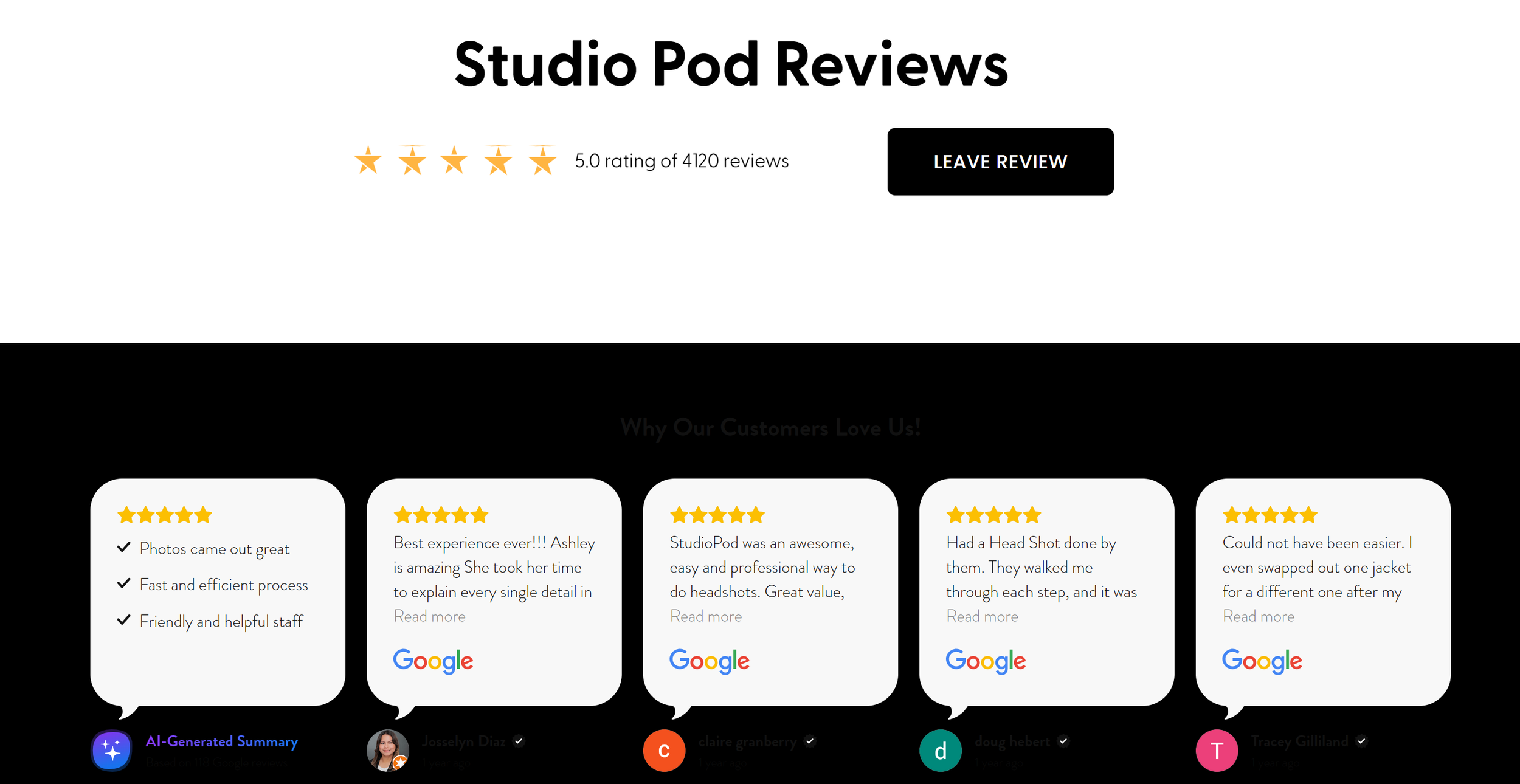 Studio Pod has got a lot of positive feedback from its users, with about 160 reviews and a perfect 5-star rating on Google Reviews. Many users praise Studio Pod for the exceptional experience it provides. They often mention that the process is not only enjoyable but also very easy to navigate. Users appreciate the speed and efficiency of the service, highlighting how quickly they can get their professional headshots. Additionally, many reviews commend the Studio Pod team for being extremely helpful and thorough in explaining the process, making the entire experience smooth and hassle-free. One of the users noted, “Can't say enough good things about the experience. It was so quick and easy. And the photos came out great! Studio Pod should be in every market!”